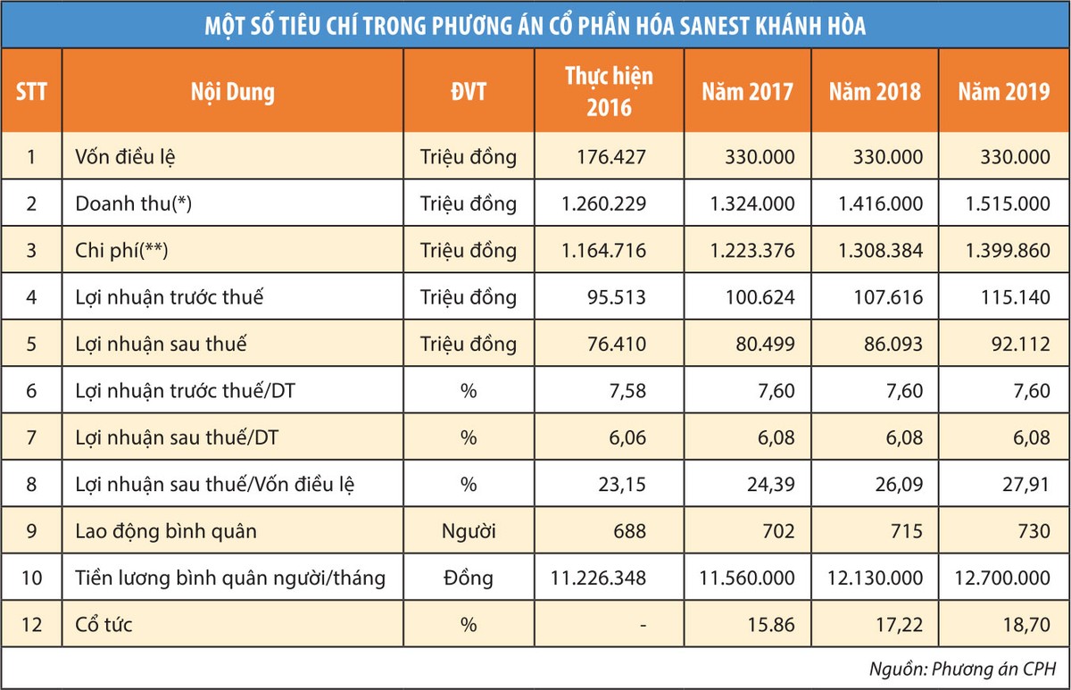 Trong 2 năm tiếp theo kể từ 2017, theo phương án khi cổ phần hóa, Sanest Khánh Hòa dự kiến lợi nhuận sau thuế mỗi năm tăng 6 tỷ đồng, lên mức 92,112 tỷ đồng năm 2019. Con số này thấp hơn thực tế đạt được ngay trong năm 2017 và sẽ còn thấp hơn nhiều so với con số kế hoạch mới của năm 2018.