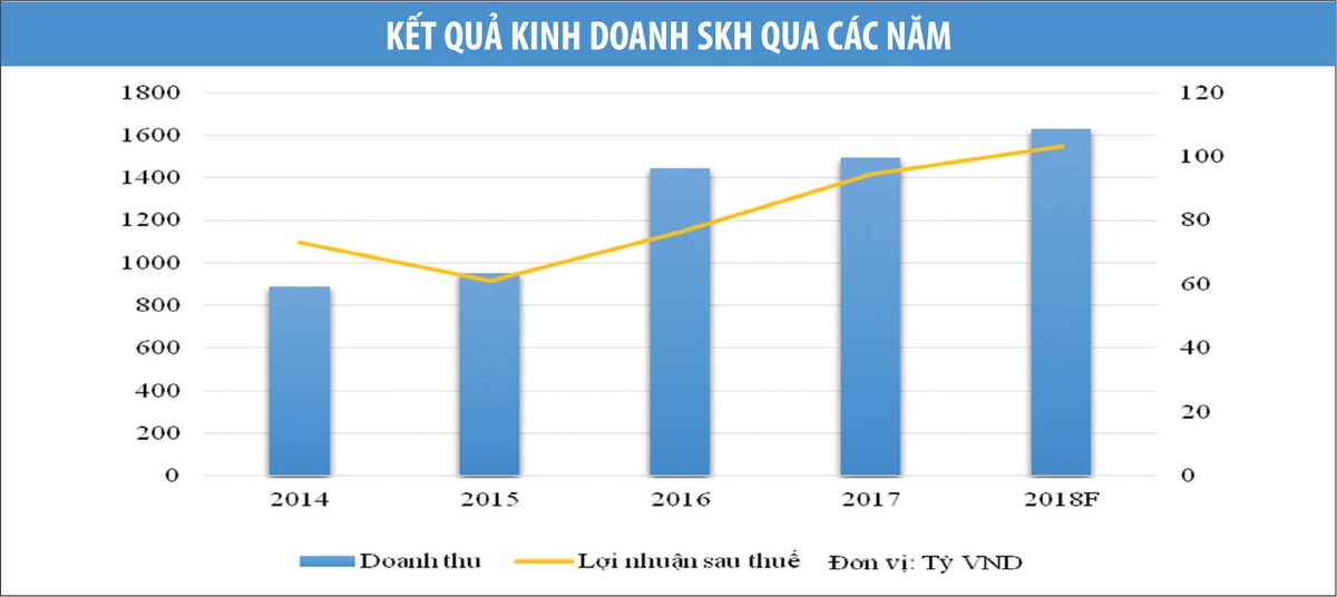 Trong tờ trình phương án kinh doanh năm 2018, Sanest Khánh Hòa dự kiến sẽ đưa doanh thu lên 1.630 tỷ đồng, lợi nhuận sau thuế 103,28 tỷ đồng. Với vốn điều lệ 330 tỷ đồng, thu nhập trên mỗi cổ phiếu SKH dự kiến sẽ đạt mức 3.129 đồng, cao hơn 20% so với con số dự phóng tại bản công bố thông tin là 2.609 đồng.