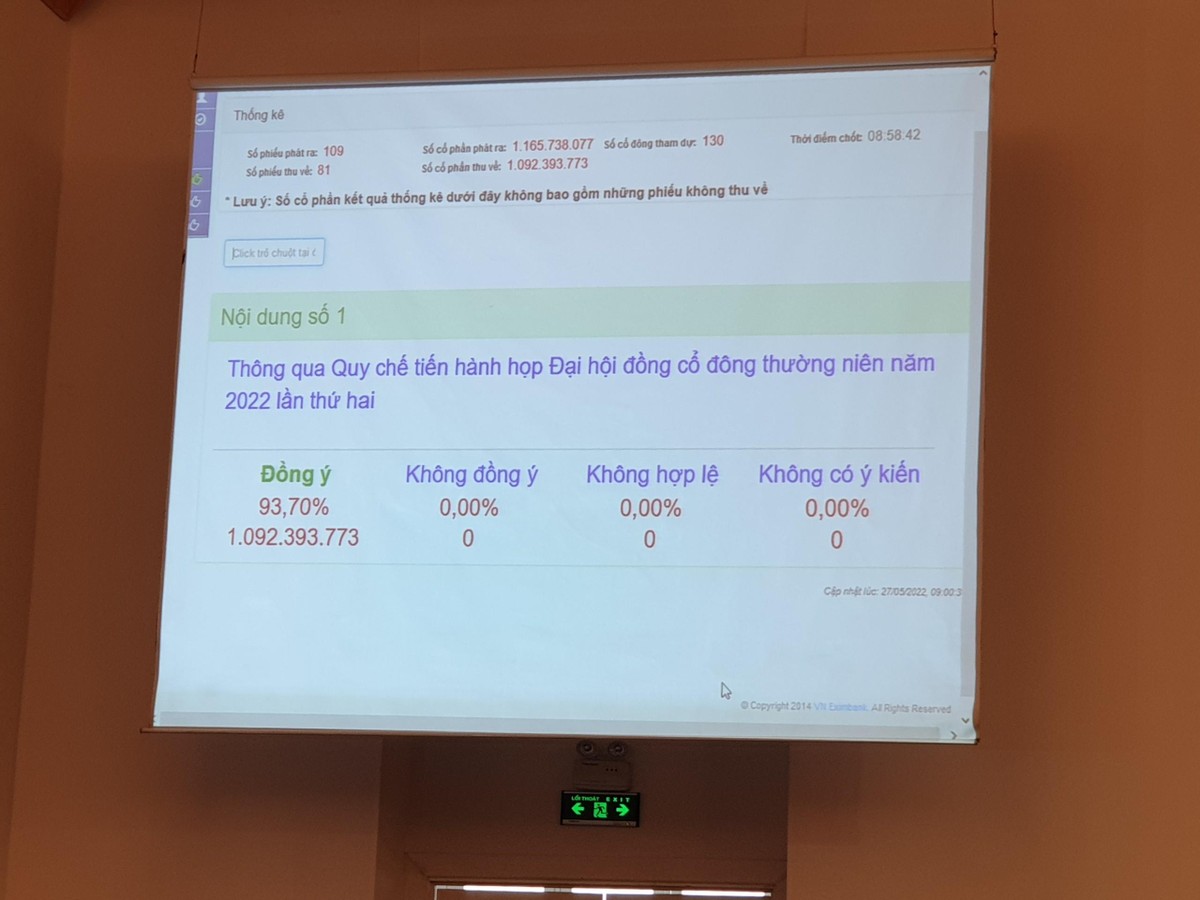Tại Đại hội sáng nay, tỷ lệ cổ đông tham dự đạt trên 80%, đủ để Eximbank tiến hành ĐHCĐ thường niên 2022.
