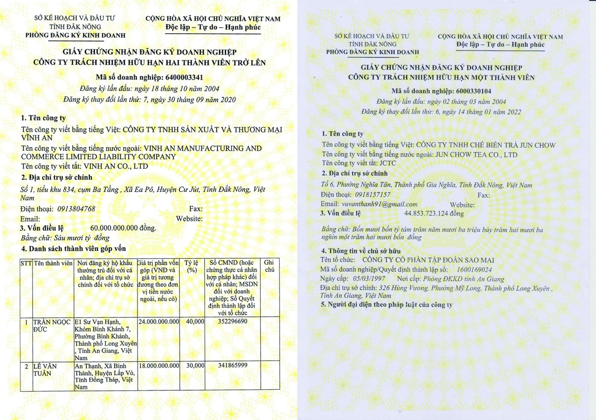 ASM đã chi phối thành công thêm một doanh nghiệp 100% vốn nước ngoài (Công ty TNHH Chế Biến Trà Junchow - Đài Loan - Thành phố Gia Nghĩa), có quỹ đất khoảng 60 ha tại Đăk Nông. Trước đó, vào năm 2020, Tập đoàn này đã kịp sở hữu Công ty TNHH Sản xuất & Thương mại Vĩnh An trụ sở đặt tại huyện Cư Jut.