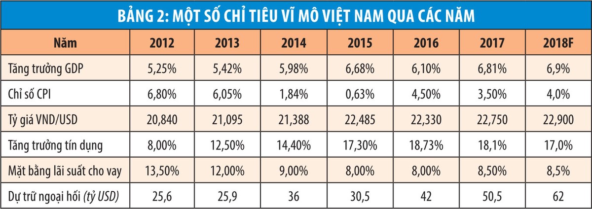 Trong nước, các chỉ báo kinh tế vĩ mô hiện tại đang ở trong vùng tốt nhất của 10 năm gần đây (xem bảng 1).