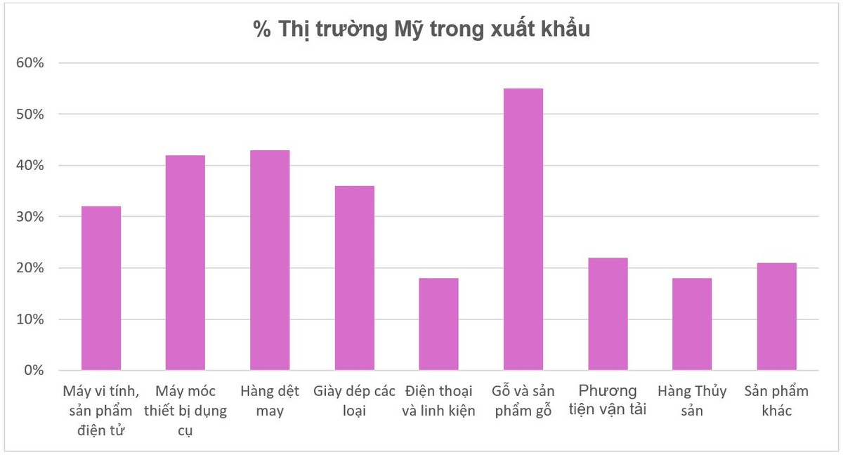 Những ngành công nghiệp có kim ngạch xuất khẩu sang Mỹ lớn, và nhiều doanh nghiệp có tỷ lệ doanh thu xuất khẩu phụ thuộc cao vào thị trường Mỹ sẽ dễ bị tổn thương nhất bao gồm đồ điện tử, thiết bị máy móc, dệt may, giày dép, đồ gỗ và thủy sản. Tuy nhiên sức ảnh hưởng là khác nhau đối với mỗi ngành và mỗi doanh nghiệp trong ngành. Các công ty đa quốc gia sản xuất điện tử và thiết bị máy móc có khả năng chuyển một phần hoạt động sản xuất hoặc hàng hóa hoàn thiện sang các quốc gia khác để giảm tác động thuế quan. Trong khi các doanh nghiệp Việt Nam ở các ngành như thủy sản, dệt may, đồ gỗ khó có khả năng chuyển hướng hoặc đa dạng hóa các thị trường tiêu thụ nhanh như vậy.