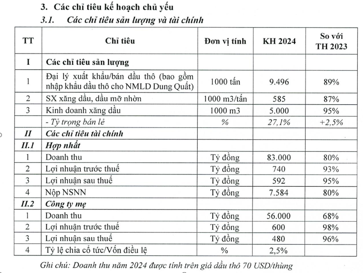 Nhà đầu tư đặt câu hỏi rằng, với tốc độ tăng trưởng như vậy nhưng kế hoạch năm 2024, PVOIL đặt doanh thu chỉ bằng 80%, và sản lượng chỉ bằng 87% đến 95% thực hiện của năm 2023, có quá an toàn thận trọng?