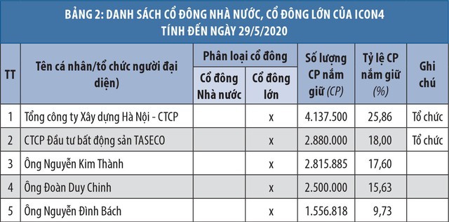Tại Đại hội đồng cổ đông thường niên 2020 vừa qua, Ban lãnh đạo của ICON4 cho biết, Công ty không đáp ứng được về năng lực tài chính để thực hiện dự án theo quy định của pháp luật (Luật Đầu tư, Luật đất đai và Luật Nhà ở), nên mặc dù được chấp thuận làm chủ đầu tư nhưng cho đến nay, công tác hoàn tất thủ tục pháp lý vẫn bế tắc. Thậm chí, việc thực hiện thủ tục này đã được thẩm định tới lần thứ 3 tại các sở, ban ngành của TP. Hà Nội.