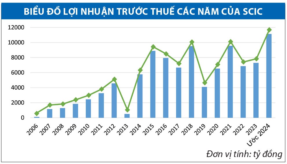 Số liệu báo cáo tổng kết của SCIC cho thấy, năm 2024, Tổng công ty ước đạt lợi nhuận trước thuế 11.140 tỷ đồng, bằng 166% kế hoạch, cao nhất từ trước đến nay.