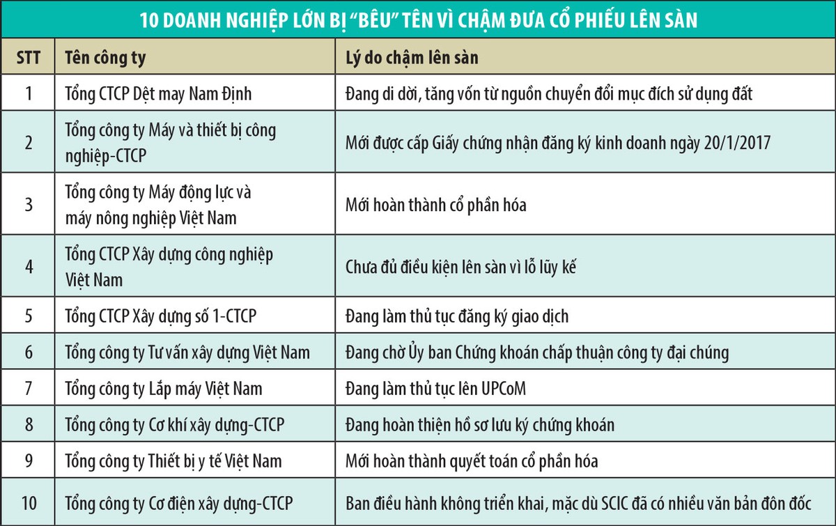 Chúng tôi đang tiếp tục rà soát, cập nhật số doanh nghiệp sau cổ phần hóa, nhưng chưa đưa cổ phiếu lên sàn, để tới đây tiếp tục báo cáo Chính phủ, trên cơ sở đó công khai danh tính các doanh nghiệp chây ỳ, để người dân biết và giám sát, từ đó góp phần thúc đẩy các doanh nghiệp sớm tuân thủ quy định đưa cổ phiếu lên sàn.