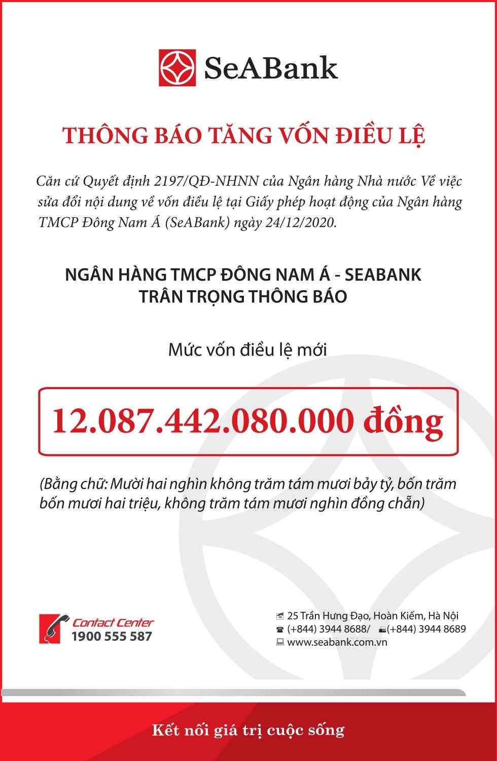 SeABank thông báo tăng vốn điều lệ