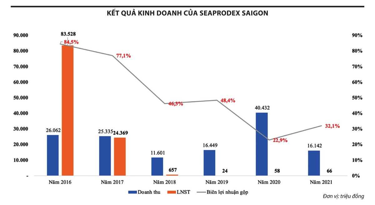 Trong 2 năm 2015 - 2016, Seaprodex Saigon ghi nhận kết quả kinh doanh tích cực, đỉnh điểm là năm 2016 đạt lợi nhuận 83,5 tỷ đồng, tăng 614,5% so với năm 2015. Trong đó, lợi nhuận được đóng góp chủ yếu bởi hoạt động tài chính khi ghi nhận 80,75 tỷ đồng, gồm lãi 47,09 tỷ đồng từ bán cổ phần góp vốn tại đơn vị khác và 33,4 tỷ đồng lãi cho vay. Tuy nhiên, các năm tiếp theo, tình hình kinh doanh của Công ty liên tục lao dốc, lợi nhuận 3 năm gần nhất đều dưới 100 triệu đồng.