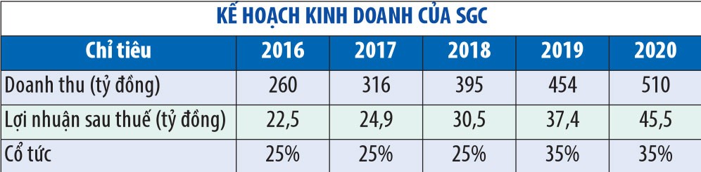 6 tháng đầu năm 2016, SGC đạt 127,4 tỷ đồng doanh thu, tăng 17,5%; lợi nhuận sau thuế đạt 12,3 tỷ đồng, tăng 39,2% so với cùng kỳ năm ngoái; lãi cơ bản trên cổ phiếu (EPS) đạt 1.638 tỷ đồng. Cổ phiếu SGC đang có thị giá là 42.300 đồng/CP. Trong phiên giao dịch cuối tuần qua (19/8), cổ phiếu SGC có lệnh đặt mua với giá trần 46.500 đồng/CP nhưng không có lệnh đặt bán nên không có cổ phiếu nào được giao dịch. Phiên trước đó cũng không có lệnh đặt bán.