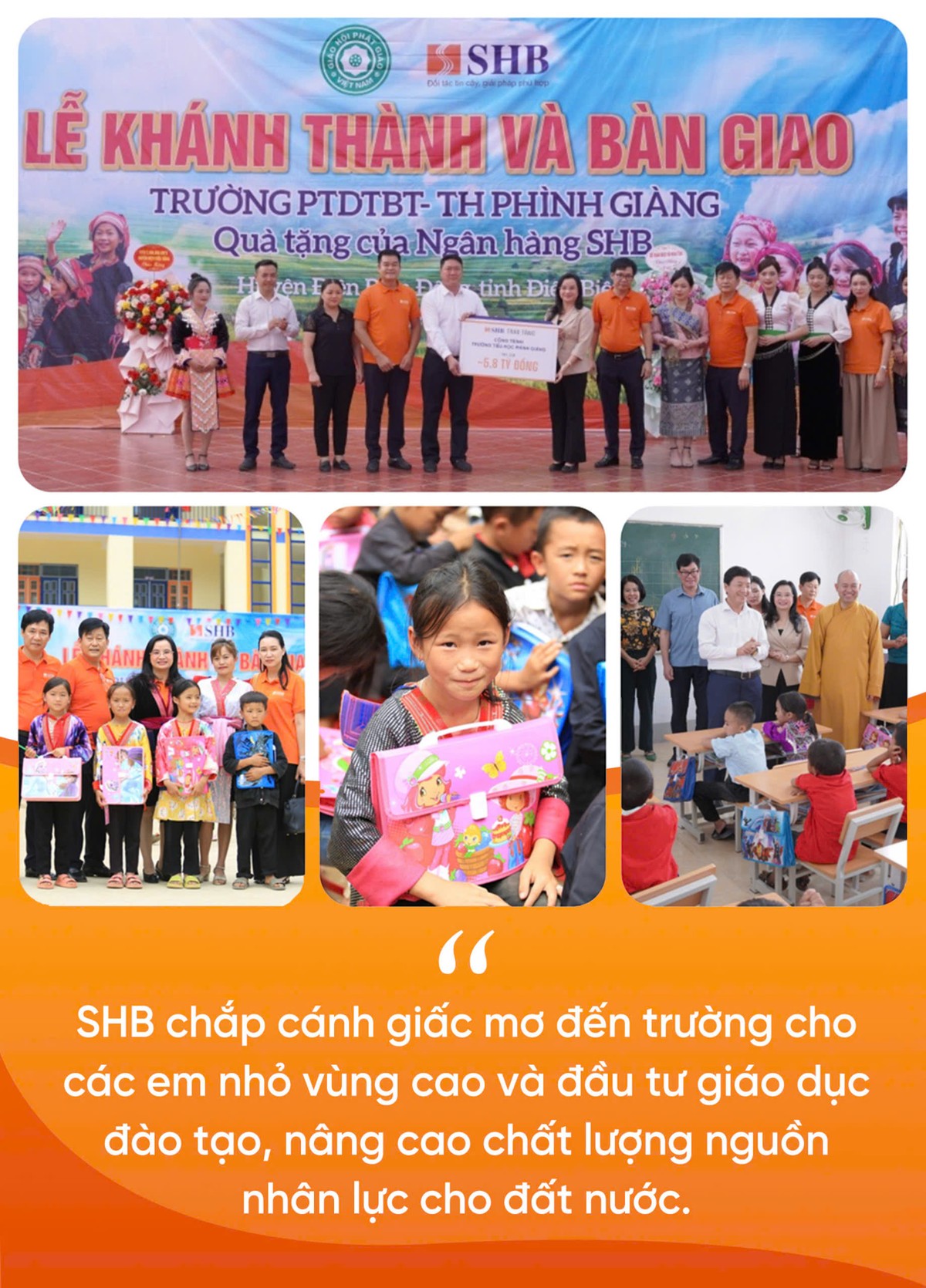 - Hoạt động tài trợ giáo dục và thể thao: Trong những năm qua, SHB đã tài trợ xây dựng trường học ở nhiều địa phương trong cả nước, trao các gói học bổng cho học sinh, sinh viên các cấp… và nhiều địa phương khó khăn trên toàn quốc, khẳng định cam kết phát triển giáo dục quốc gia. Mùa khai giảng năm học mới 2024 - 2025, SHB đã phối hợp với Giáo hội Phật giáo Việt Nam và UBND huyện Tủa Chùa và Điện Biên Đông, tỉnh Điện Biên, khánh thành 2 công trình lớp học cho các trường phổ thông dân tộc bán trú tiểu học trên địa bàn tỉnh, do SHB tài trợ với tổng giá trị hàng chục tỷ đồng. Trong lĩnh vực văn hóa - thể thao, trong những năm qua, SHB luôn là đơn vị đồng hành cùng bóng đá Việt Nam, tài trợ cho nhiều chương trình đào tạo, phát triển tài năng bóng đá trẻ.