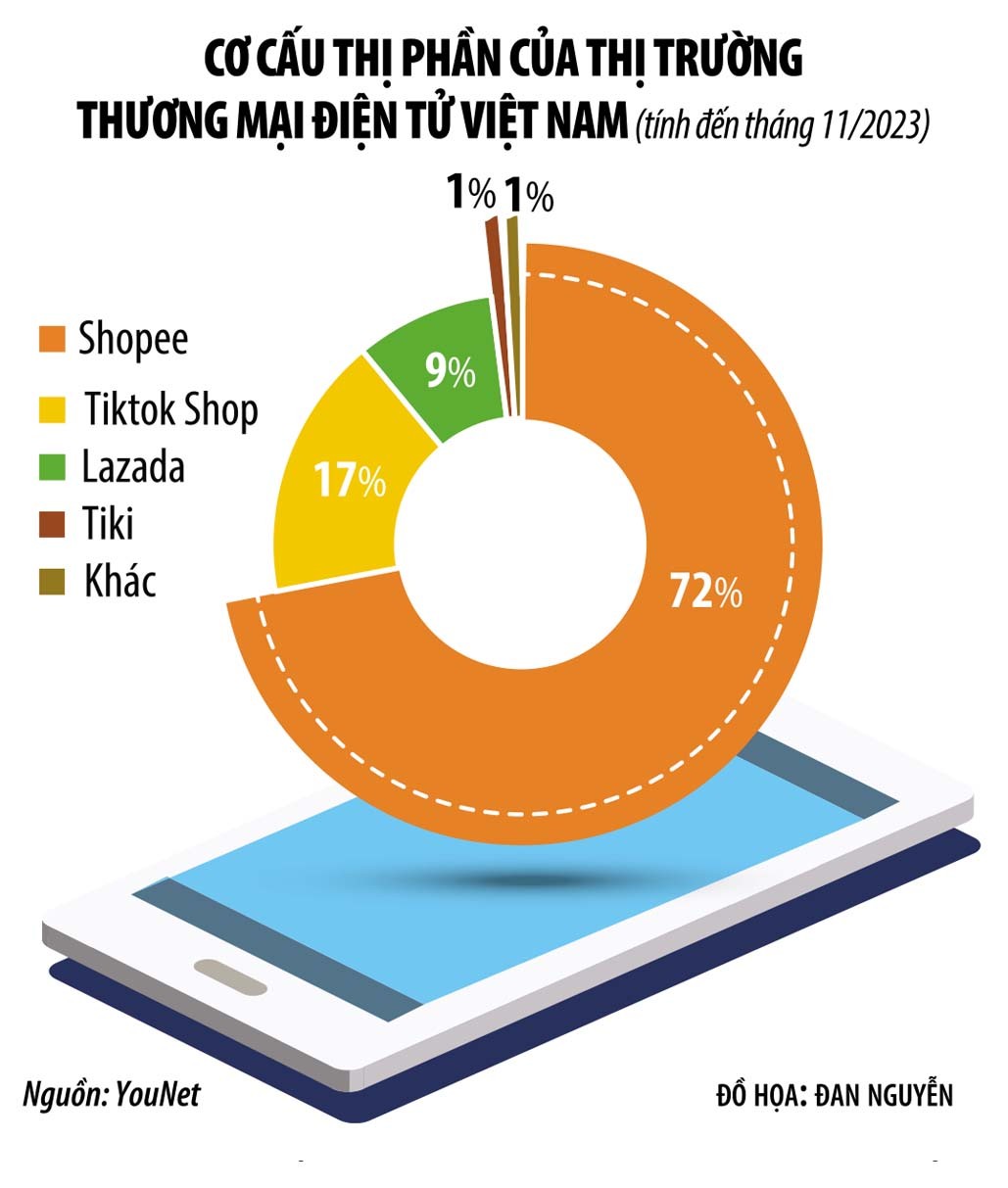 Lazada và Tiki xác lập vị trí vững chắc trên thị trường TMĐT Việt Nam, nhưng sau đó, Shopee xuất hiện.
