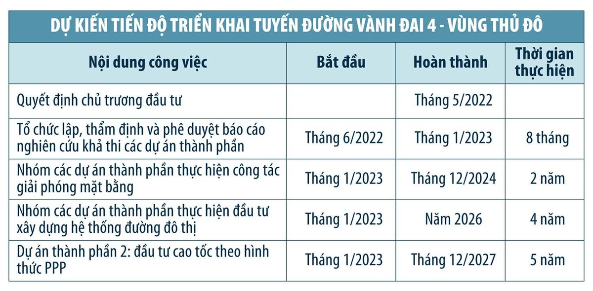 Theo đó, Dự án Đầu tư xây dựng đường vành đai 4 - vùng Thủ đô có chiều dài 112,8 km (gồm 103,1 km đường vành đai 4 và 9,7 km tuyến nối cao tốc theo hướng cao tốc Nội Bài - Hạ Long), được chia thành 7 dự án thành phần vận hành độc lập và triển khai theo hình thức đầu tư công kết hợp đầu tư PPP, thay vì 3 dự án thành phần tại Tờ trình số 02.