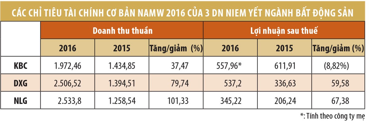 Về kết quả chung, tổng lợi nhuận trước thuế 2016 của KBC đạt 922,02 tỷ đồng, tăng 26% so với cùng kỳ năm trước; lợi nhuận sau thuế đạt 712,3 tỷ đồng, tăng 18%. Tuy nhiên, lợi nhuận sau thuê của cổ đông công ty mẹ lại giảm nhẹ 9%, chỉ đạt 557,96 tỷ đồng.