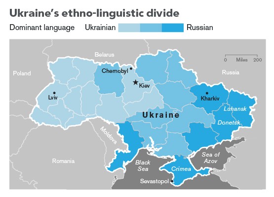 Mặc dù sự khác biệt về ngôn ngữ và văn hóa không nói nên toàn bộ câu chuyện, và cuộc xung đột với Nga đã đưa người Ukraine đến với nhau, đất nước 45 triệu dân này vẫn bị chia rẽ giữa các khu vực phía đông nói tiếng Nga và các tỉnh phía Tây nói tiếng Ukraine. Thương mại của Ukraine cũng phản ánh sự chia cắt đó khi có khoảng 1/4 sản lượng xuất khẩu của nước này xuất sang EU và một lượng tương tự xuất sang Nga.