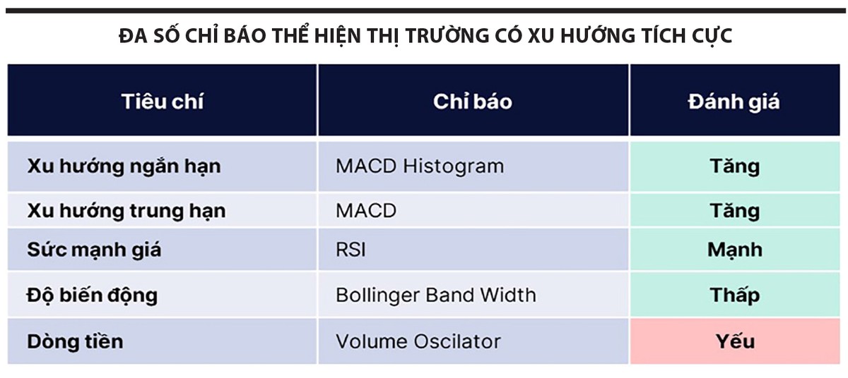 Thời gian tới, quá trình đi lên của thị trường có lẽ sẽ gặp trúc trắc, vì chúng tôi vẫn chưa thấy được sự mạnh mẽ của dòng tiền qua nhiều phiên. Thực tế, rất khó để thay đổi tình trạng này, do hiệu ứng cận Tết Âm lịch. Tuy vậy, chỉ cần 4/5 tiêu chí kỹ thuật tích lũy cũng đủ để thị trường duy trì trạng thái tích cực.