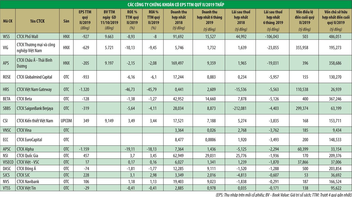 Theo dữ liệu của FiinGroup, tính đến hết quý II/2019, có 17 CTCK có kết quả kinh doanh thua lỗ. Một vài công ty trong số này đang cho thấy sự hồi sinh khi có nhân tố mới vào doanh nghiệp như CTCK Vina (VNCS) - sau khi tăng vốn và đăng ký giao dịch trên UPCoM, VNCS lãi hơn 5 tỷ đồng trong năm 2018.