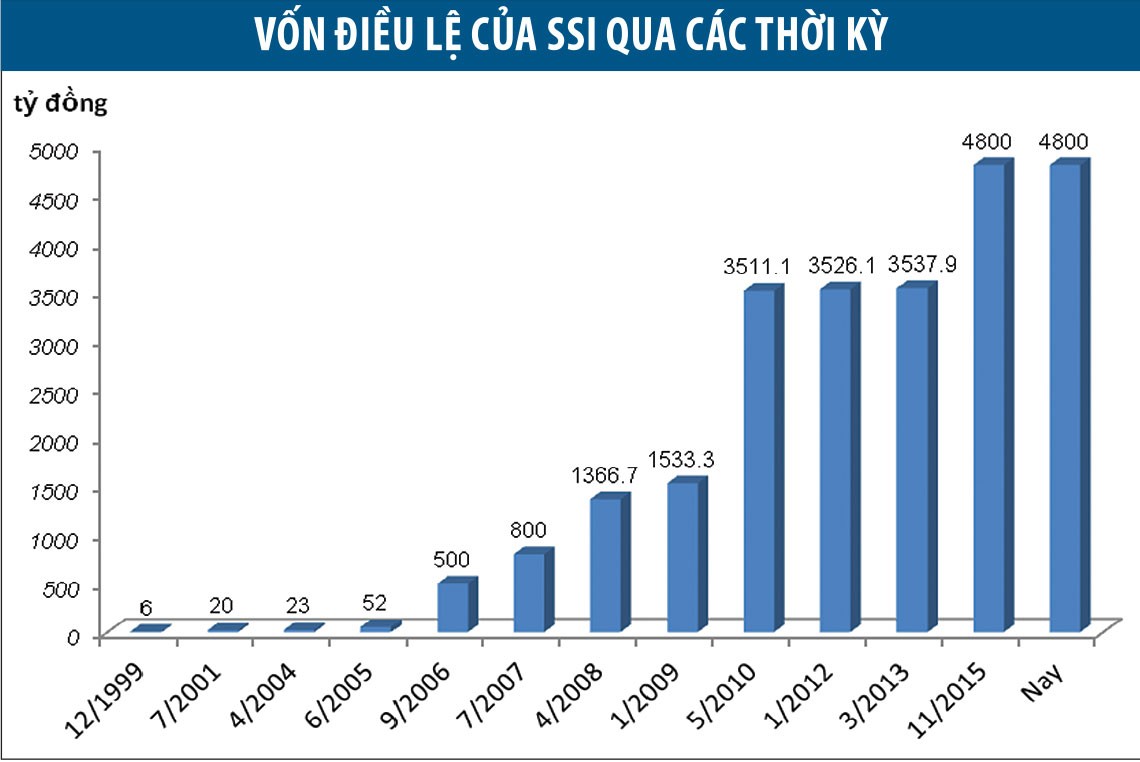 Và sau 16 năm, từ một khởi đầu khiêm tốn, SSI đã vươn lên thành định chế tài chính hàng đầu thị trường với vốn điều lệ 4.800 tỷ đồng, tăng 800 lần. Công ty có 10 địa điểm kinh doanh trên cả nước, độ phủ lớn nhất trong hệ thống công ty chứng khoán. Lợi nhuận của SSI cũng đứng đầu thị trường. Theo báo cáo mới nhất, 9 tháng đầu năm 2016, SSI đạt 949 tỷ đồng lợi nhuận trước thuế hợp nhất, xấp xỉ kế hoạch đặt ra cho cả năm (950 tỷ đồng).