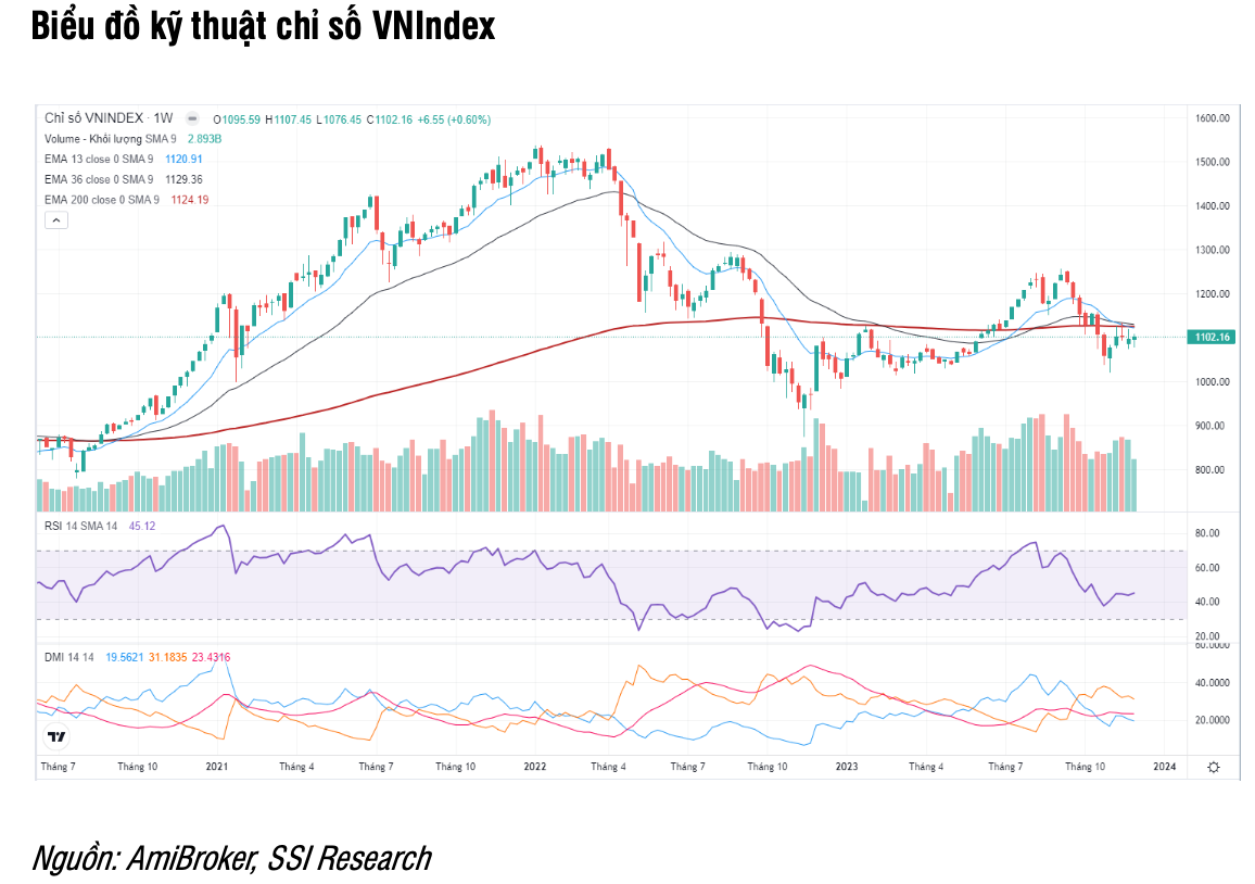 Như vậy, chỉ số VN-Index có xu hướng chuyển động với tín hiệu tích cực hơn trong tháng 12/2023 từ tín hiệu trung tính trước đó. SSI Research dự kiến, biên độ dao động của chỉ số có khả năng diễn ra trong phạm vi 1.065 -1.175 điểm.