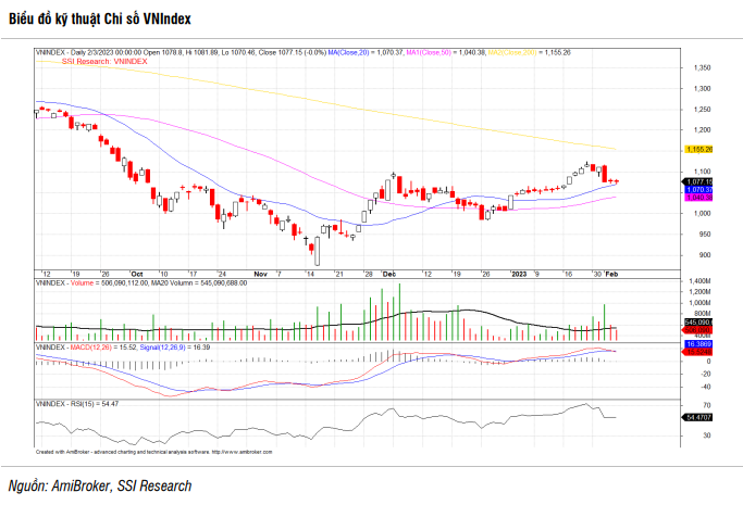 Về mặt kỹ thuật, thị trường chứng khoán Việt Nam quay lại với diễn biến thận trọng trong các phiên đầu tháng 2 sau tháng 1 tăng mạnh mẽ. Hiện tại, chỉ số đang cho thấy trạng thái tích lũy trên đường MA 20 ngày đi cùng với sự thu hẹp của thanh khoản.