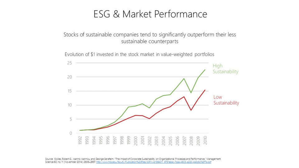 Cụ thể, các nhà kinh tế như George Serafeim, Bob Eccles và Ioannis Ioannou đã chỉ ra tầm quan trọng của ESG đối với việc quản trị rủi ro, cải thiện hiệu quả hoạt động và nâng tầm chiến lược của doanh nghiệp. Theo đó, cổ phiếu của các công ty có chiến lược phát triển bền vững có màn biểu diễn vượt trội hơn so với các doanh nghiệp ít quan tâm hơn tới yếu tố này.