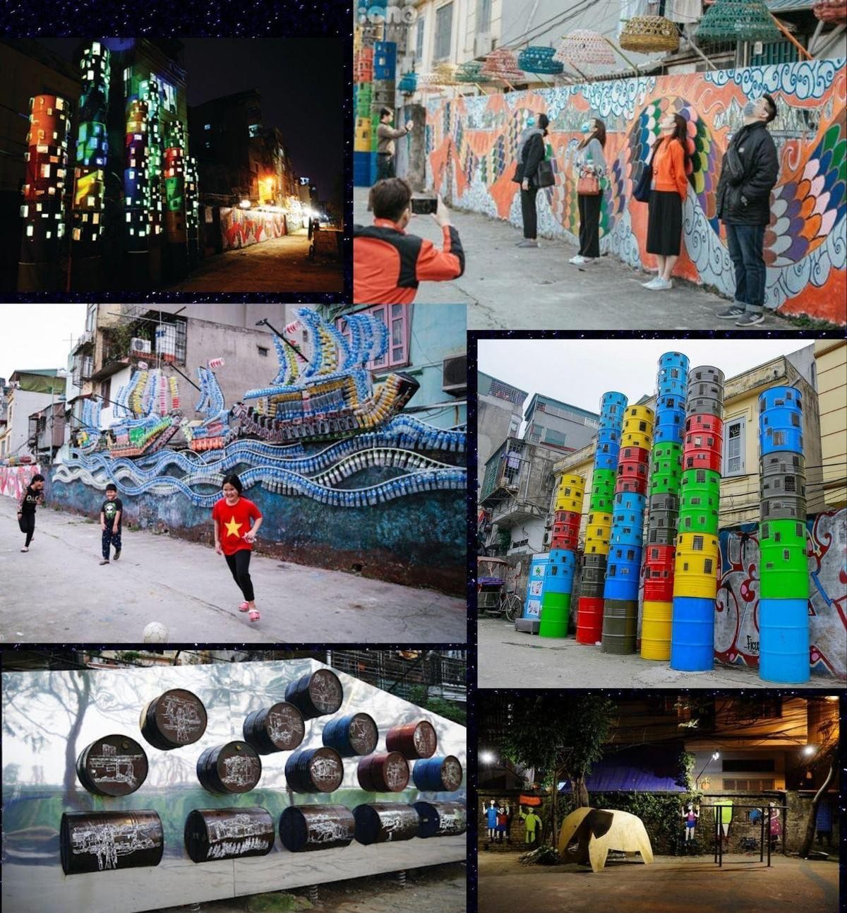 Điểm thêm một sắc màu tươi mới cho bức tranh du lịch Thủ đô là dự án nghệ thuật công cộng Phúc Tân (quận Hoàn Kiếm), với cụm 16 tác phẩm nghệ thuật dài gần 250 mét chạy dọc sông Hồn, ra mắt năm 2020. Trước khi dự án “chào đời”, cả chục năm, khu tập kết rác thải Phúc Tân tồn tại ở gần chân cầu Long Biên. Rồi qua bàn tay của các nghệ sĩ, kiến trúc sư, rác thải biến thành những tác phẩm có hồn một cách diệu kỳ, làm cho những không gian vốn chật hẹp, ngổn ngang của thành phố được cân bằng trở lại. Từ đó, tái tạo sức sống mới ngay trên những không gian di sản chất chứa ký ức văn hóa, lịch sử đô thị bị lãng quên.