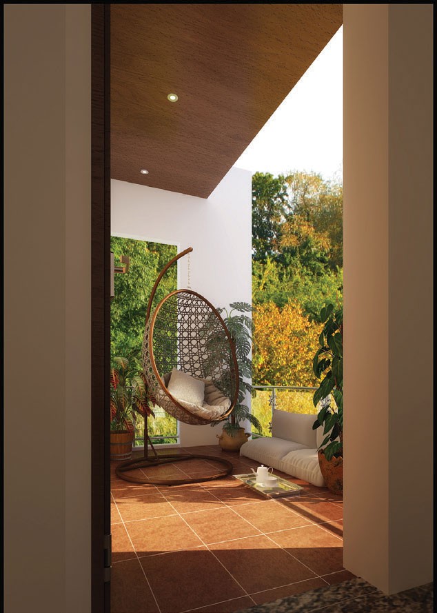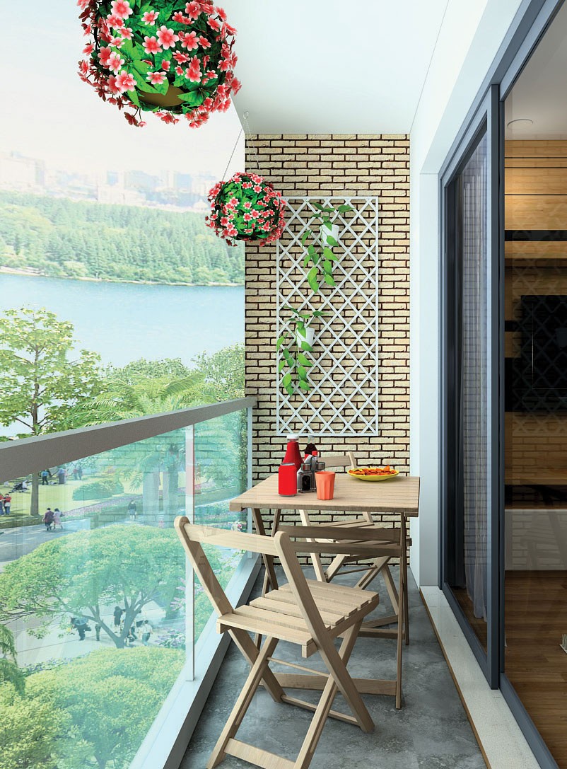 Vậy là chỉ còn lại góc thư giãn ngoài ban công nhỏ, tôi không chỉ coi đây là nơi tận hưởng nắng gió mà còn là khoảng thở quý giá của căn hộ. Ở đây tôi cũng trồng cây nhưng dùng tường gạch vàng làm nền cho cây cỏ. Thêm 1-2 chiếc ghế gỗ mộc mạc để ngồi nhấm nháp ly trà những chiều rảnh rỗi.