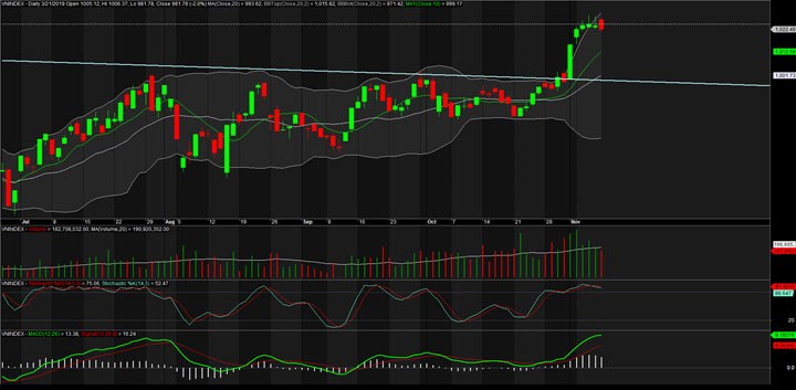 Kết phiên giao dịch ngày 8/11/2019, VN-Index chốt ở 1.022,49 điểm, giảm 1.,4 điểm (-0,15%) với khối lượng giao dịch khớp lệnh đạt 158 triệu đơn vị, giá trị 3.434 tỷ đồng.