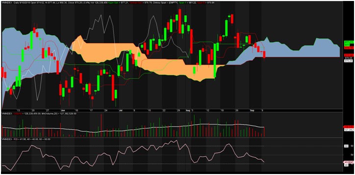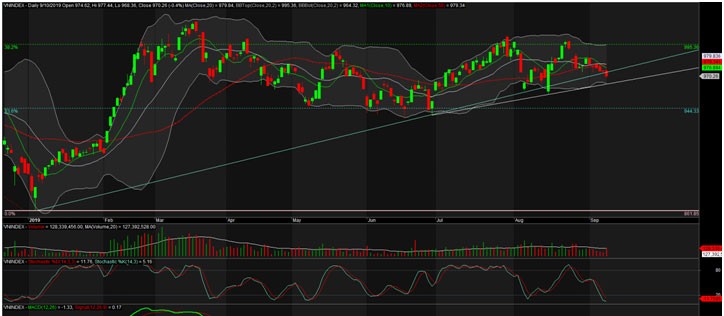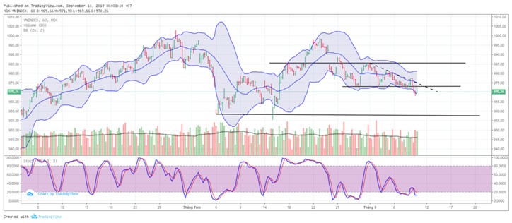 Kết phiên giao dịch ngày 10/9/2019, VN-Index chốt ở 970,26 điểm, giảm -3,86 điểm (-0,4%) với khối lượng giao dịch khớp lệnh đạt 128 triệu đơn vị, giá trị 2.787 tỷ đồng.