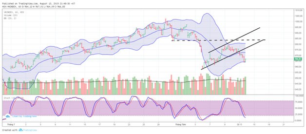 Kết phiên giao dịch ngày 13/8/2019, VN-Index chốt ở 966,83 điểm, giảm 8,48 điểm (-0,87%) với khối lượng giao dịch khớp lệnh đạt 143 triệu đơn vị, giá trị 3.295 tỷ đồng.