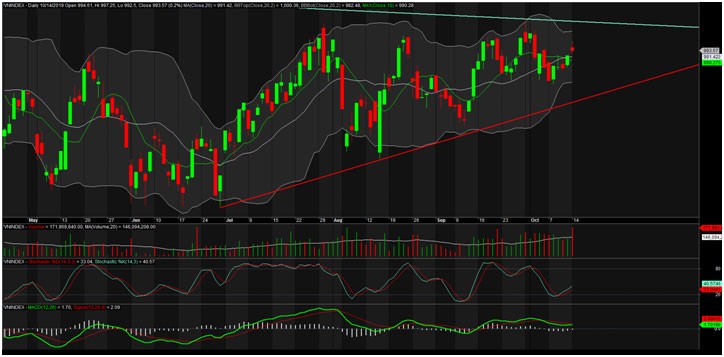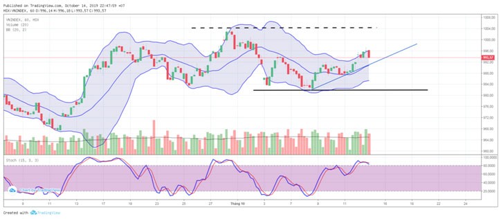 Kết phiên giao dịch ngày 14/10/2019, VN-Index chốt ở 993,57 điểm, tăng 1,73 điểm (+0,17%) với khối lượng giao dịch khớp lệnh đạt 172 triệu đơn vị, giá trị 3.495 tỷ đồng.