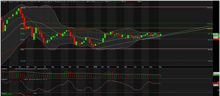Nhìn chung, chart tuần vẫn cho thấy cửa thị trường đang đi ngang tích lũy để đi lên sáng hơn là ngược lại, cho dù xu hướng lên mới chưa được xác nhận bởi nhiều chỉ báo. Vì vậy, VN-Index cần ít nhất 1 tuần giao dịch nữa để chứng minh, con sóng mới đã bắt đầu.
