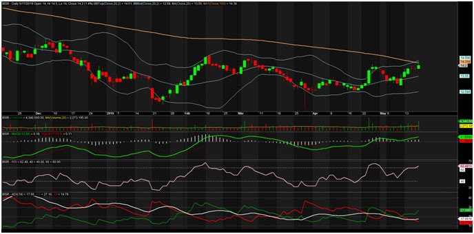 Giá đang bám giải BB upper, đường RSI đang tăng dần và tiếp cận đường mốc 60. MACD vẫn phát triển tốt, lực mua mạnh dần theo từng phiên. Duy chỉ có ADX chưa xác nhận xu hướng mới. Rủi ro chấp nhận được (cắt lỗ tầm MA20 khoảng 16) với mục tiêu ngắn hạn tầm 18,5.