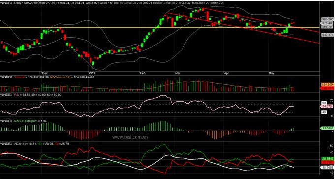 Kết phiên giao dịch cuối tuần 17/5/2019, VN-Index chốt ở 976,48 điểm tăng 0,79 điểm (+0,08%) với khối lượng giao dịch khớp lệnh đạt 120 triệu đơn vị, giá trị 2.716 tỷ đồng.