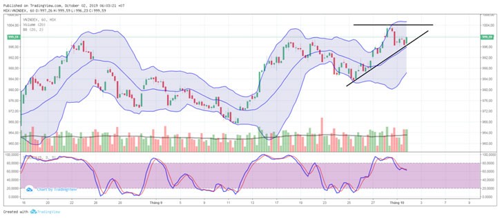 Kết phiên giao dịch ngày 1/10/2019, VN-Index chốt ở 999,59 điểm, tăng 3,3 điểm (+0,3%) với khối lượng giao dịch khớp lệnh đạt 142 triệu đơn vị, giá trị 3.127 tỷ đồng.