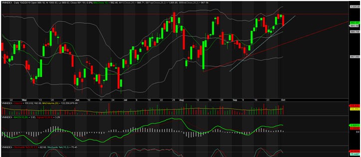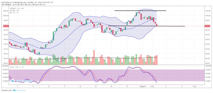 Kết phiên giao dịch ngày 2/10/2019, VN-Index chốt ở 991,19 điểm, giảm 8,4 điểm (-0,84%) với khối lượng giao dịch khớp lệnh đạt 156 triệu đơn vị, giá trị 3.573 tỷ đồng.