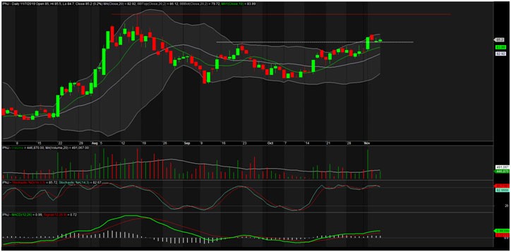 PNJ rõ ràng đang trong uptrend. Hiện tại, cổ phiếu này chưa rơi khỏi MA10 và mới đi lên từ nhịp điều chỉnh về quanh 83. Tính đến thời điểm hiện tại thì PNJ mới chạy được 2 giá (+2,5%). Quá ít cho 1 bluechips đang vào trend. Mặt khác, đỉnh gần nhất 84,8 đã bị vượt qua và có lẽ đã retest xong sau phiên 7/11.