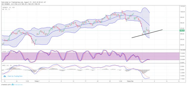 Kết phiên giao dịch ngày 7/8/2019, VN-Index chốt ở 965,93 điểm, tăng 1,32 điểm (+0,14%) với khối lượng giao dịch khớp lệnh đạt 134 triệu đơn vị, giá trị 2.806 tỷ đồng.