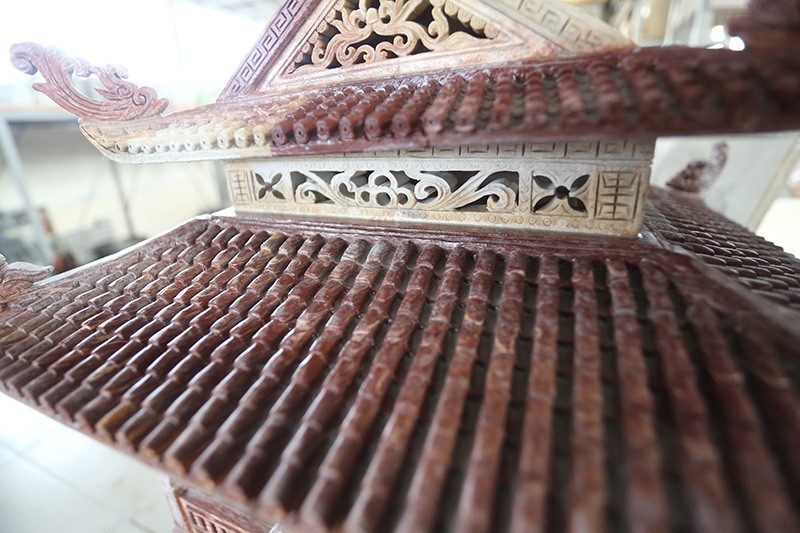Phần mái ngói Khuê Văn Các được chạm khắc hoàn toàn từ đá giống như thật