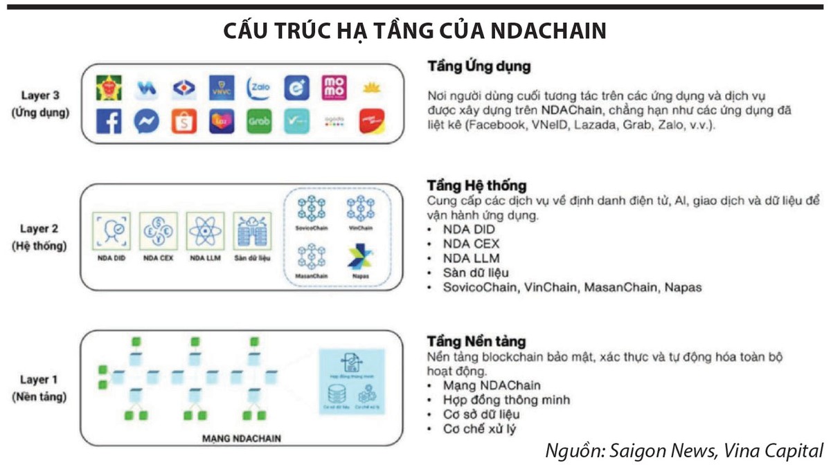 Một cơ hội khác là phát triển hệ sinh thái công nghệ và tài chính trong nước. Trong tháng 7, Chính phủ đã ra mắt NDAChain – nền tảng blockchain quốc gia, cho phép thực hiện các giao dịch tài chính an toàn và mua sắm trực tuyến bảo mật. NDAChain được kỳ vọng là nền tảng cho các sản phẩm nội địa cạnh tranh với quốc tế. Cùng với đó, Luật Công nghiệp Công nghệ số (ban hành 7/2025) công nhận tài sản số, định hướng cấp phép nền tảng và yêu cầu tích hợp cổng nạp/rút VND. Những bước đi này giúp Việt Nam tiến gần hơn tới vị thế trung tâm blockchain khu vực.