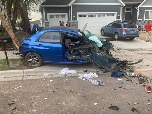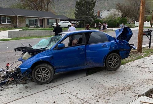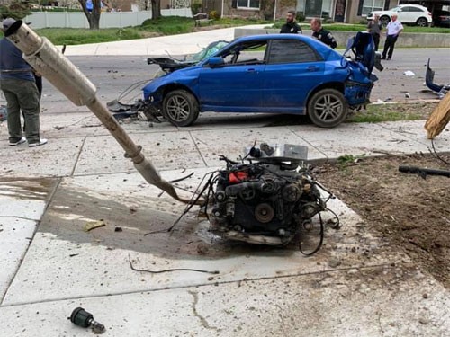 Một người đàn ông ở Pleasant Grove, bang Utah, đăng những bức ảnh hiện trường tai nạn ngay trước cửa nhà hôm 20/4 lên tài khoản mạng xã hội và thu hút sự chú ý của nhiều người. Hình ảnh cho thấy xe vỡ nát, động cơ, hộp số và ống xả nằm cách đó vài mét trên hè.
