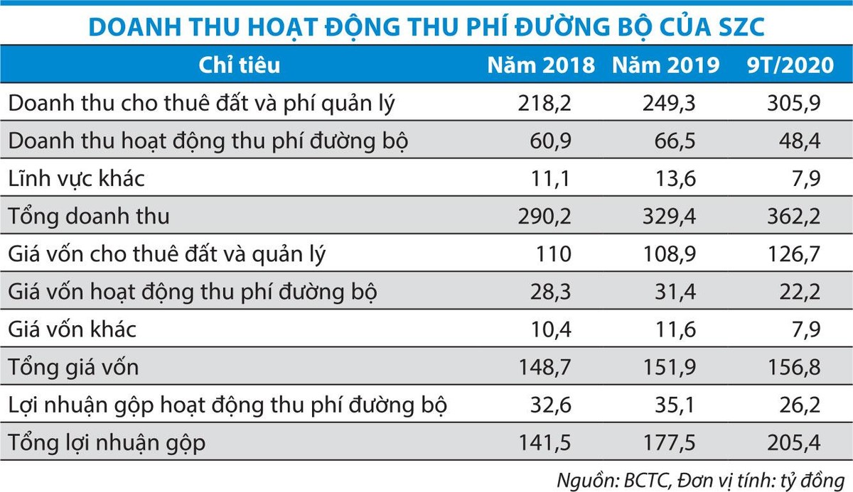 Bản cáo bạch niêm yết năm 2018 cho biết, SZC đã đưa vào thu phí các trạm 1, 2a, 2b, 3a, 3b và 4a trong dự án BOT 768 với vốn đầu tư tới ngày 31/12/2017 là 338,48 tỷ đồng. Dự án được cấp phép ngày 11/1/2010, thời gian đầu tư là 35 năm. Như vậy, thời hạn của dự án còn tương đối dài.