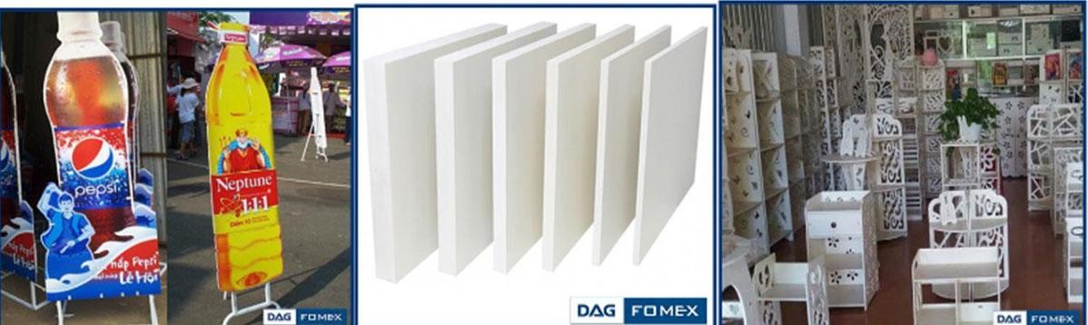 Tấm Fomex của DAG được sản xuất trên dây chuyền đồng bộ, hiện đại, có tính tự động hoá cao, luôn tuân thủ theo hệ thống quản lý chất lượng ISO 9001-2015. Sản phẩm tấm Fomex của DAG được ứng dụng đa dạng trong các lĩnh vực của cuộc sống nhờ những đặc tính ưu việt hơn so với những loại vật liệu khác: