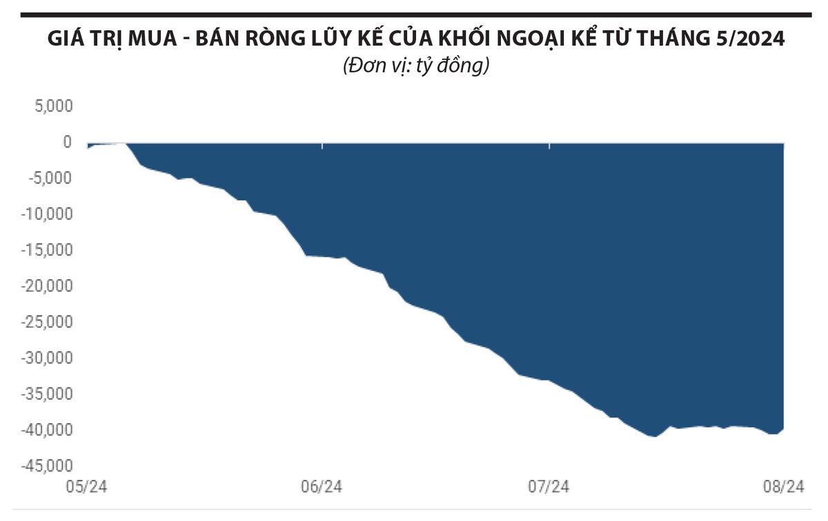 Áp lực bán hạ nhiệt từ phía khối ngoại là điểm sáng, tổng giá trị bán ròng trong tháng 7 đã giảm về mức 8.300 tỷ đồng, giảm khoảng 50% so với 2 - 3 tháng trước đó. Dòng vốn ngoại quay trở lại với số phiên mua ròng dày đặc hơn, đóng vai trò giữ nhịp trong những phiên rung lắc mạnh khi chịu tác động tiêu cực từ liên thị trường, đặc biệt áp lực từ liên thị trường.