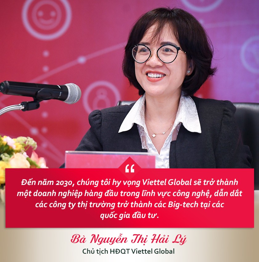 “Một tâm huyết lớn của Viettel Global, đó là trở thành một nhà đầu tư nước ngoài hiệu quả nhất Việt Nam và dẫn dắt các công ty thị trường trở thành các đơn vị hàng đầu về dịch vụ số trong năm 2025. Và đến năm 2030, chúng tôi hy vọng Viettel Global sẽ trở thành một doanh nghiệp hàng đầu trong lĩnh vực công nghệ, dẫn dắt các công ty thị trường trở thành các Big-tech tại các quốc gia đầu tư” – bà Nguyễn Thị Hải Lý nhấn mạnh.
