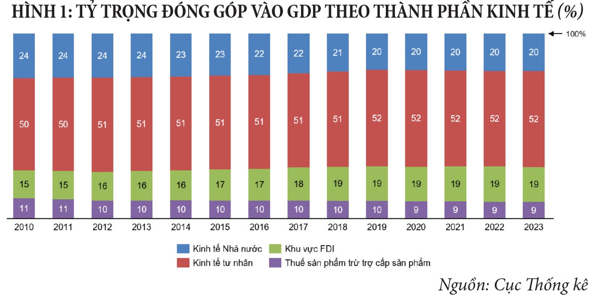 Khối kinh tế tư nhân (KTTN) là khu vực quan trọng của nền kinh tế khi đóng góp hơn 50% vào tăng trưởng GDP suốt 13 năm qua (Hình 1).