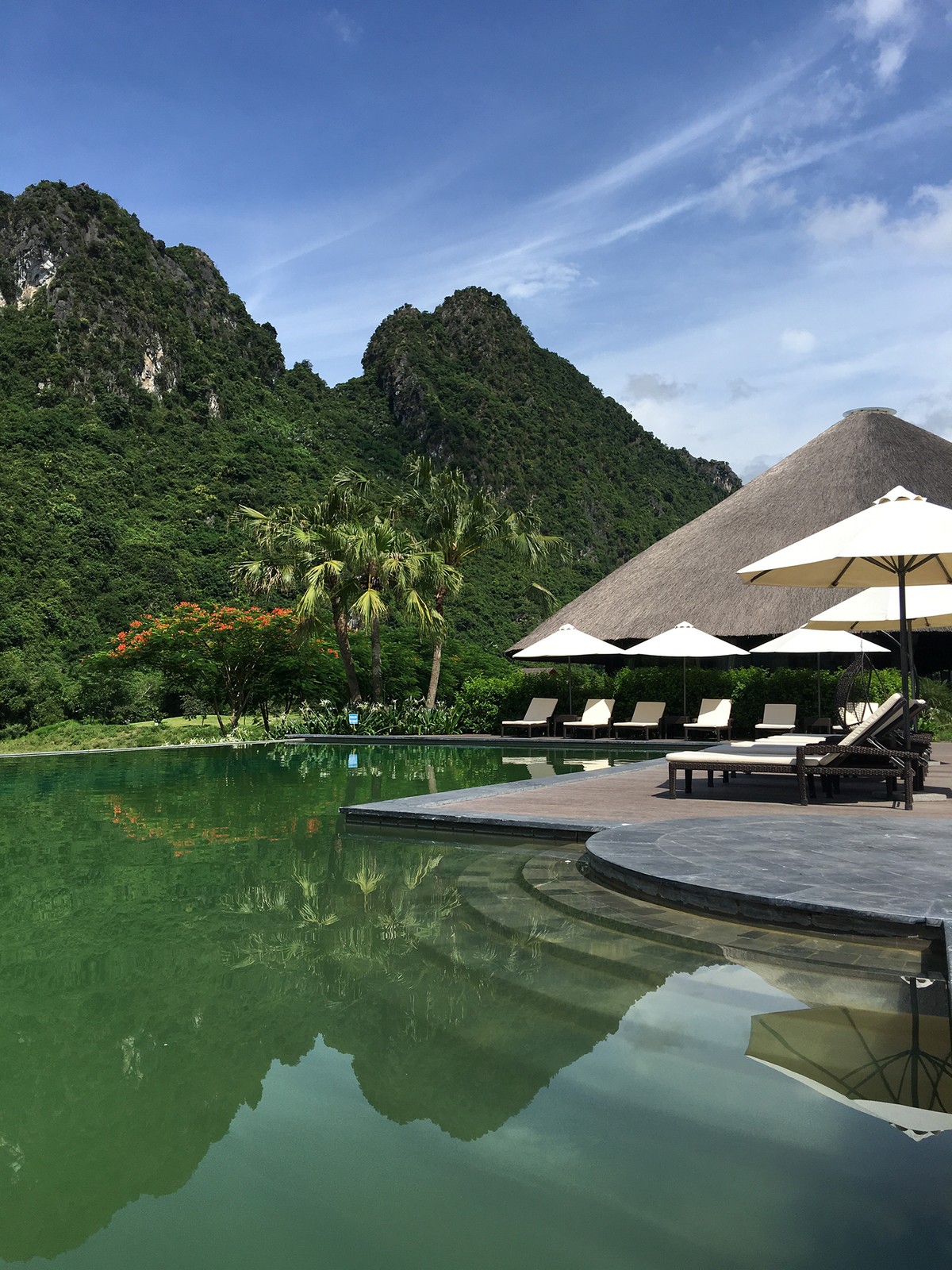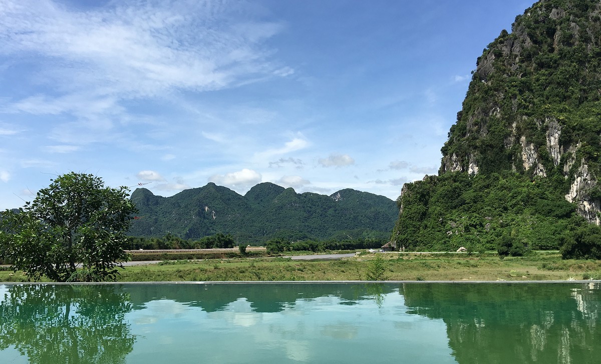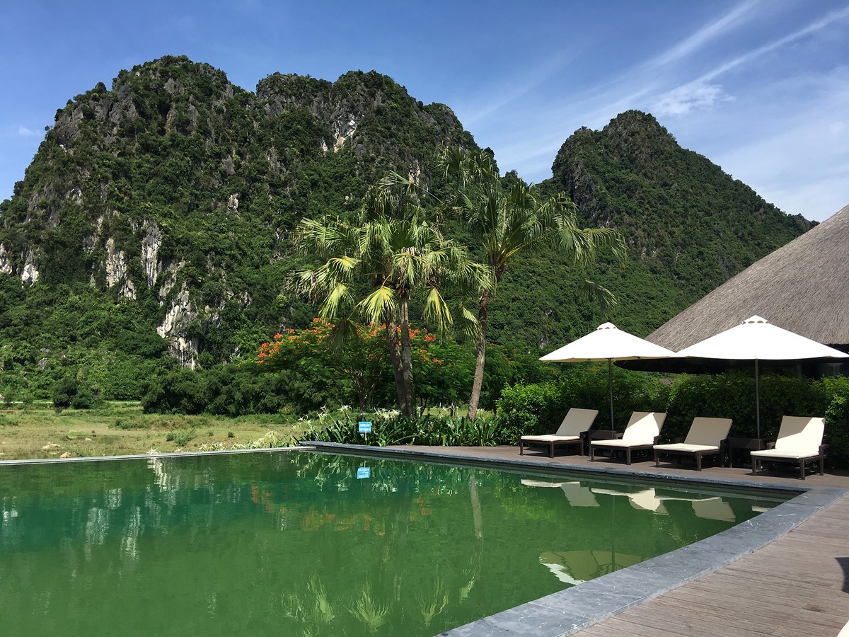 Trên nền màu xanh đó, không gian Serena Resort hiện lên như một bức tranh thủ mặc với bốn bề sông núi và hoa cỏ rực nở quanh năm. Kiến trúc điển hình vùng Tây Bắc đã được pha lẫn một cách khéo léo với kiến trúc phương Đông thông qua các mái nhà lợp tre, lá cách điệu hình bông sen duyên dáng.