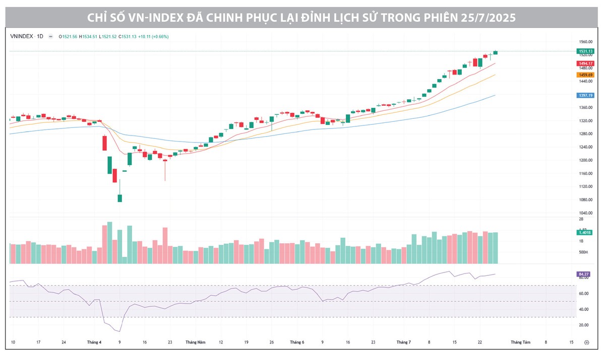 Dù VN-Index đã vượt mốc 1.500 điểm, số điểm tăng vẫn có phần nhiều đến từ một số mã nhà Vingroup. Nếu bóc tách phần tăng từ những mã này, phần lớn thị trường vẫn dao động quanh ngưỡng dưới 1.400 điểm, cho thấy nhiều cổ phiếu chưa quay lại đỉnh lịch sử. Ngoài ra, kết quả kinh doanh quý gần đây đang cho thấy dấu hiệu cải thiện trên diện rộng, yếu tố có thể tiếp thêm động lực giúp chỉ số có cơ hội lớn để bứt phá thuyết phục khỏi vùng kháng cự 1.510 - 1.530 điểm.