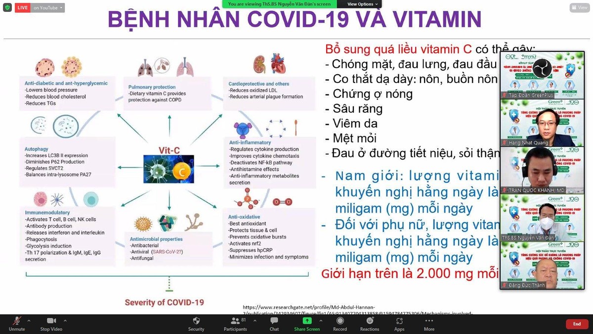 Do đó, BS Đàn lưu ý mỗi người cố gắng duy trì các mức dinh dưỡng vừa đủ để tăng đề kháng tự nhiên cho cơ thể. Các vitamin rất cần thiết cho cơ thể, nhất là trong mùa dịch nhưng phải dùng đủ và đúng, vì dư vitamin sẽ dẫn đến nhiều rắc rối không ngờ. Một số loại thực phẩm cũng có thể gây độc nếu dùng quá liều. Do vậy, tùy cơ địa mỗi người mà có sự chọn lựa, điều tiết phù hợp. Vitamin C rất quan trọng nhưng giới hạn tối đa là 2.000 mg mỗi ngày. Cùng với đó là tăng cường vitamin D, B, K, Zn, Mg cùng một số chất điện giải.