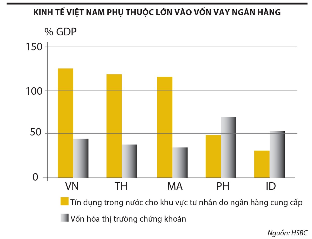 Nhận định được bà Yun Liu, chuyên gia kinh tế phụ trách thị trường ASEAN, Bộ phận Nghiên cứu toàn cầu HSBC đưa ra, mặc dù là thị trường chứng khoán có kết quả hoạt động tốt nhất khu vực ASEAN trong năm qua, thị trường vốn Việt Nam vẫn chưa được coi là phát triển toàn diện. Trong nhiều thập kỷ qua, tăng trưởng kinh tế Việt Nam chủ yếu dựa vào tín dụng ngân hàng. Nói cách khác, tín dụng ngân hàng đã tăng đáng kể so với quy mô nền kinh tế, cho thấy đây vẫn là yếu tố chính hỗ trợ xu hướng tăng trưởng cao của Việt Nam trong những năm qua.