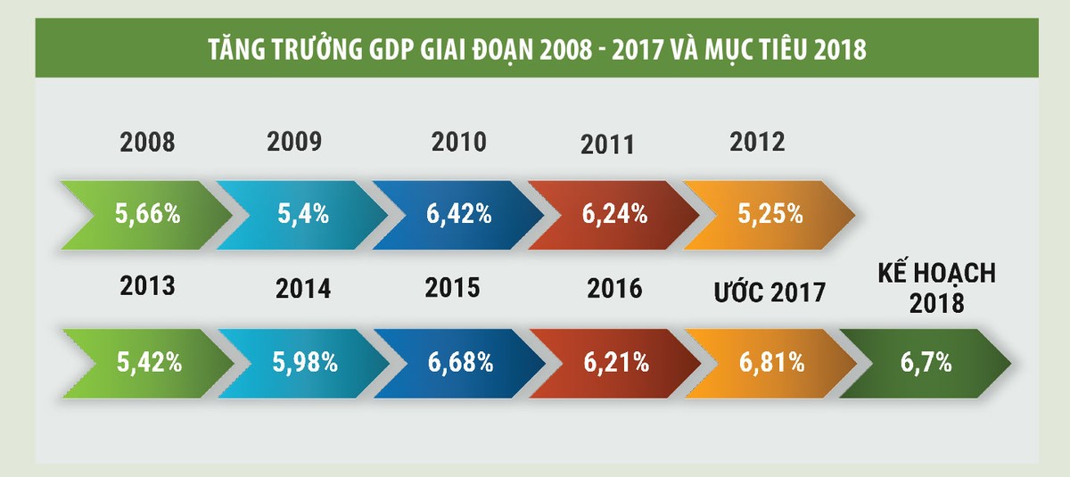 Theo công bố của Tổng cục Thống kê, GDP năm 2017 tăng trưởng 6,81%, mức cao nhất trong giai đoạn 2011 - 2017, bất chấp những trở ngại tưởng chừng không thể vượt qua.